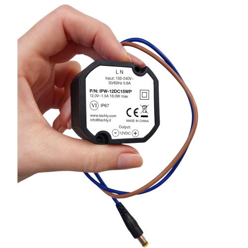 Alimentatore Impermeabile IP67 12 V / 1,5 A, 18 W Plug 5.5 x 2.1 mm Nero